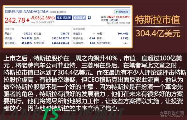 可以說,這三筆錢把Tesla從懸崖邊拉了回來(lái)。在熬過這段艱難的時(shí)光后,Tesla的資金情況逐漸好轉(zhuǎn)。2010年特斯拉在納斯達(dá)克上市,融資額達(dá)2.26億美元。開盤當(dāng)日,穆斯克也在帳面上力挽狂瀾地賺了6億3千萬(wàn)美元。而上市之后,特斯拉股價(jià)在一周之內(nèi)飆升40%,市值一度超過100億美元,將老牌汽車公司菲亞特、三菱甩在身后。